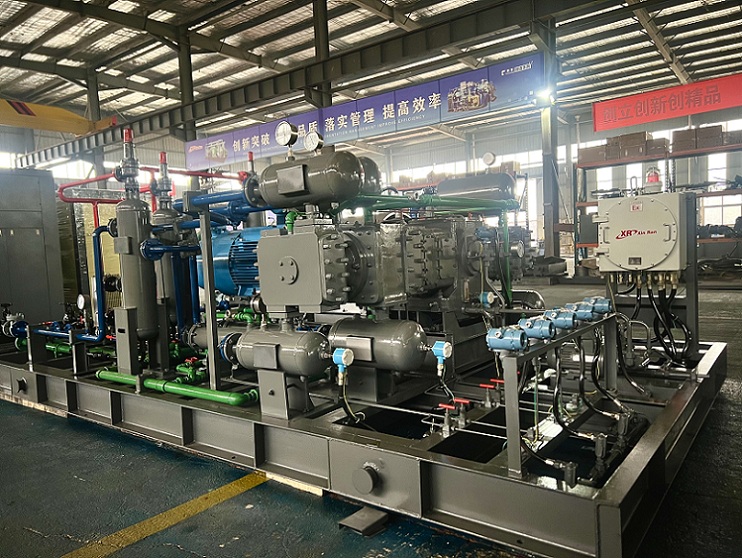 在安全与适配性方面,该空压机通过防爆认证,整机采用撬装式集成设计,集成空气处理单元、干燥系统、缓冲储气系统与智能控制系统,安装便捷、移动灵活,可快速适配油田现场复杂地形与恶劣工况。设备配备在线监测与远程AI自检功能,实现故障预警、无人值守与联锁控制,有效降低运维成本,同时通过多级精密过滤与除油脱水处理,确保压缩空气洁净度,避免污染注井系统与地层,保障作业安全。